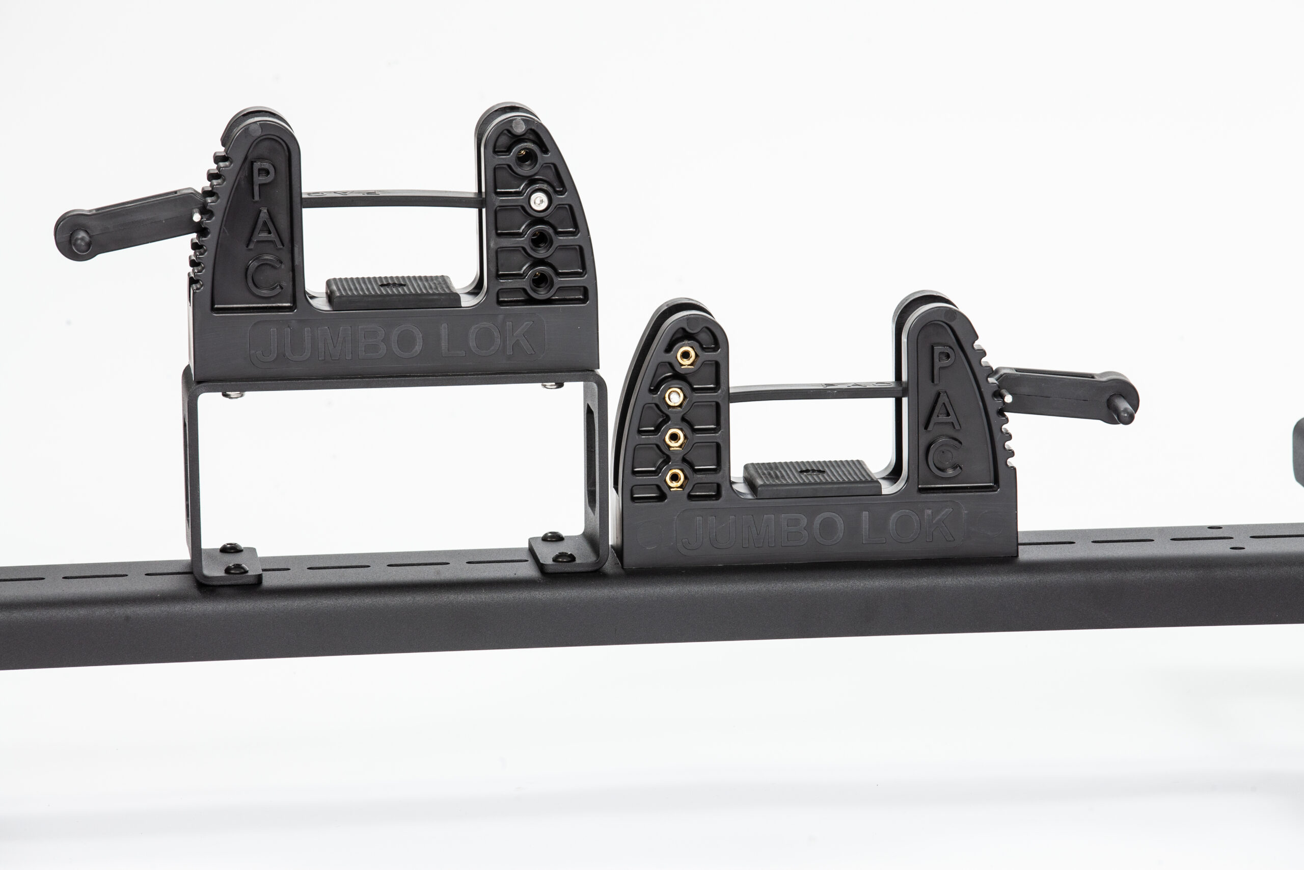 The TL-LR-2 is our new ladder rack for the Lenco Bearcat. The ladder rack will either hold one TL4 or TL6 or two ladders which stack on top of each other. The ladders are secured with large Pac Tool mounts which carry a 9G rating. The steel rack mounts to the rail on top of all Lenco Bearcat armored vehicles. All mounting hardware is included. Call or email for pricing.